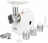 Номинальная потребляемая мощность 160 Вт * Габаритные размеры (ШxВxГ) 25,6/15,25/ 18,25 см * Производительность 0,5 кг/мин * Мощность 600 Вт * Вес 3,9 кг * Цвет Белый * Защита двигателя от перегрузки; Экономия электроэнергии без ущерба качеству; Отсек для хранения шнура питания; 2 вида решеток для получения фарша разной консистенции - с диаметром отверстий 4,9 мм и 7 мм; Высокое размещение шнековой камеры; Устойчивые нескользящие ножки для фиксации мясорубки на поверхности стола;
