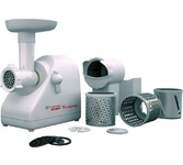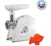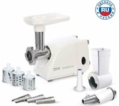 Мощность, Вт : 300 * Max. мощность, Вт: 2000 * Вес, кг: 3.6 * Производительность, кг/час: 35 * Режим работы: продолжительный * В комплекте две решетки и удобный отсек для принадлежностей * Насадка - большая овощерезка *