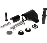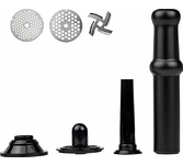 Мясорубка Maunfeld MMG.231W изготавливается из высокотехнологичного пластика, это делает корпус легким, при этом достаточно прочным и легко моющимся. Поддон для подачи продуктов также сделан из пластика, его также легко мыть, он вместительный. Сами элементы мясорубки изготавливаются из металла, укомплектована тремя дисками для измельчения с различными диаметрами, разнообразными насадками, это позволяет получать ингредиенты для разных блюд: от домашних котлет до колбасок. Кроме насадок и поддона в комплектацию также входит пластиковый толкатель в тон к основному цвету корпуса. Одновременно он является контейнером для хранения насадок, которые вы используете в процессе измельчения продуктов. Для работы имеется одна программа, также есть функция реверс. Она поможет, если внутри устройства что-то застряло, вы не можете вытащить это без обратной прокрутки основного элемента. Такое часто случается с продуктами, которые тяжело перемалываются. Чтобы увеличить производительность и срок службы, есть возможнос