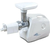 Мощность 1700Вт. Производит-ть 120 кг/час. Приставка-соковыжималка д/цитрусовых. 3 решетки с отверстиями разл. размера. Функция реверс. Особая конструкция шнековой с винтовой канавкой. Прочный и острый нож.