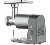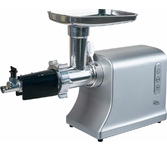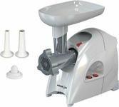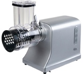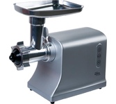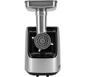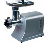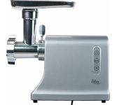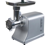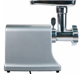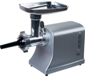 Мясорубка, мощность 2400 Вт, функция реверс, литой алюминиевый корпус, мощный медный мотор с защитой от перегрева, металлические шестеренки и металлический редуктор, набор решеток для фарша: маленькая (4мм), средняя (7мм) и для рубки мяса, низкий уровень шума - менее 75 дБ, надежный фиксатор рабочей головы, прорезиненные нескользящие ножки. Аксессуары: насадки для приготовления сосисок и колбасок кеббе, пластиковый контейнер. Производительность: 2.5кг/мин. Цвет: серый