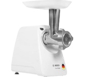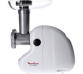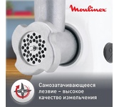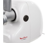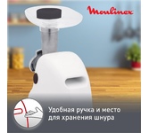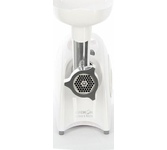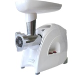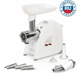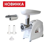 Номинальная потребляемая мощность 300 Вт. Материал корпуса пластик. Панель управления механическая. Длина провода 1,5 м. Материал ножей нержавеющая сталь. Производительность 4 кг/мин. Реверс. Мощность 2000 Вт. Цвет белый. Производительность — до 3 кг фарша в минуту. Двойная защита от перегрузки. Функция «реверс» для предотвращения наматывания жилок на шнек. Отсек в корпусе для шнура питания, хранения ножа и насадок. Особая заточка ножа и решетки увеличенной толщины из нержавеющей стали, обеспечивающие высокое качество фарша из всех видов мяса и других продуктов. До 30 минут непрерывной работы. 2 вида решеток для получения фарша разной консистенции - с диаметром отверстий 4,9 мм и 8,5 мм. Высокое размещение шнековой камеры. Эргономичная гайка для удобной сборки/разборки мясорубки. Ручка для переноски. Устойчивые нескользящие ножки для фиксации мясорубки на поверхности стола. Возможность вертикального хранения для экономии пространства на кухне.