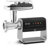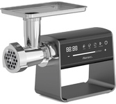 Профессиональная электрическая мясорубка MG225, Максимальная мощность 3000 Вт, Сенсорное управление с LED дисплеем, Электродвигатель постоянного тока, DC, Высокая производительность до 3 кг. мяса в минуту, Стильный алюминиевый корпус, Металлическое соединение шнека с редуктором, 6 скоростей работы для эффективной обработки разных продуктов, Функция реверса, Нож из высококачественной стали, 2 решетки из высококачественной стали в комплекте, Шнековый блок, с профессиональным замком Толкатель для продуктов, Металлический лоток, Противоскользящие резиновые ножки-присоски, Насадки для формирования колбасок разного размера и кеббе, Двойная защита двигателя, Длина шнура 1,2 м