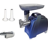 Номинальная потребляемая мощность 300 Вт Производительность 4 кг/мин Мощность 2000 Вт Двойная защита от перегрузки; Функция «реверс» для предотвращения наматывания жилок на шнек; Отсек в корпусе для шнура питания, хранения ножа и насадок; Особая заточка ножа и решетки увеличенной толщины из нержавеющей стали, обеспечивающие высокое качество фарша из всех видов мяса и других продуктов; До 30 минут непрерывной работы; 2 вида решеток для получения фарша разной консистенции - с диаметром отверстий 4,9 мм и 8,5 мм; Новая конусообразная конструкция шинковки для овощей; Высокое размещение шнековой камеры; Эргономичная гайка для удобной сборки/разборки мясорубки; Широкая ручка для переноски; Устойчивые нескользящие ножки для фиксации мясорубки на поверхности стола; Цвет темно-синий