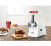 Номинальная мощность 350 Вт. Пиковая мощность 1500 Вт. Производительность 1.8 кг/мин. Насадки 2 диска для фарша. для домашних колбас. Материал корпуса пластик. Материал загрузочного лотка пластик. Защита от перегрузок. Отсек/подставка для хранения насадок. / в пластиковом толкателе /.