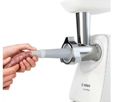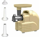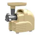 Мясорубка цвет бежевый максимальная мощность - 2000 Вт. Максимальная производительность – 4 кг/мин. В комплекте: 2 насадки для набивки колбас; насадка для кеббе; нож с саблевидной режущей кромкой из нержавеющей стали; 2 решетки увеличенной толщины из нержавеющей стали с отверстиями ? 4,9 мм и 8,5 мм; 1 запасной металлический колпачок. Преимущества: • Двойная защита двигателя от перегрузки • Увеличенное время непрерывной работы – 30 минут • Функция «реверс» для предотвращения наматывания жилок на шнек • Удобное хранение шнура питания, ножа и насадок в отсеке с откидной крышкой • Эргономичная гайка для удобной сборки/разборки мясорубки