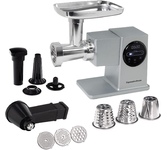 Мясорубка Максимальная мощность: 2700Вт Номинальная мощность: 800Вт Напряжение: 220-240В, 50/60Гц Производительность: 2.7кг/мин. Сенсорный дисплей с LED Плавная регулировка скорости: да Функция реверс: есть Встроенный отсек для хранения насадок: да Материал ножа: нержавеющая сталь Длина сетевого шнура: 1м