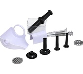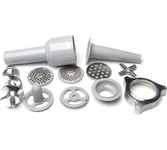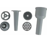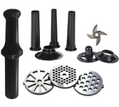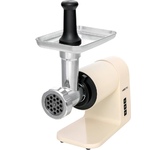 Мощность 600 Вт. Мощность при блокировке 1800 Вт. Быстрая сборка, высокая надежность. Большой загрузочный лоток с толкателем. Отсек д/хранения формовочных дисков. Производ-ть до 3 кг/мин. Насадка для кеббе. Насадка для колбас.