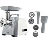 Мясорубка Bosch MFWS609W — это компактный и мощный помощник на кухне, созданный для быстрого и качественного приготовления фарша и домашних колбас. Благодаря двигателю с максимальной мощностью до 2100 Вт, она справляется с переработкой до 3.5 кг мяса в минуту, а продуманный дизайн и прорезиненные ножки обеспечивают устойчивость и комфорт в использовании. В комплект входят насадка для колбас и три перфорированных диска — крупный, средний и мелкий, что значительно расширяет функциональность мясорубки. Характеристики: Мощность: 500 Вт Максимальная мощность при блокировке вала: 2 100 Вт Производительность: 3.5 кг/мин Реверс Материал корпуса: пластик Длина провода: 1 м Максимальное время непрерывной работа: 10 мин Тип управления: поворотный механизм Количество скоростей: 2 шт Ширина: 20 см Высота: 24.5 см Глубина: 24 см Вес: 4.1 кг