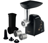 Макс. мощность 600Вт. Производительность 40кг/ч. 3 скорости. Сервисная функция «Момент». 2 решётки с отверстиями диаметром 4,4 мм,7 мм. 5 запасных переходников в комплекте. Надежный саблевидный нож позволяет приготовить пышный и нежный фарш, с минимальной потерей сока из волокон.