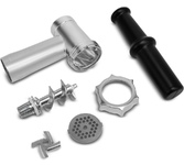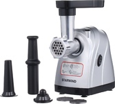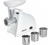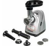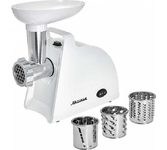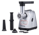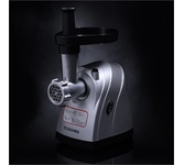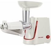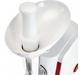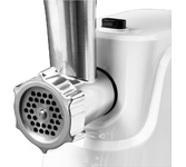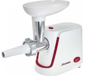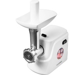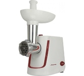 Номинальная потребляемая мощность 2000 Вт, Производительность 1,7 кг/мин, Электромясорубка предназначена для измельчения мяса и других видов продуктов, также используется для изготовления колбасок, лапши, спагетти, печенья, сока из мягких фруктов и овощей, Подходит для обработки любого вида мяса, Цвет: белый с красным , Прочный металлический шнек, Металлический привод шнека увеличивает надежность и долговечность прибора, Крестообразный нож, , Насадка для томатов, Две насадки «КУББЕ», Насадка для набивки колбасок, Удобный толкатель, Противоскользящие прорезиненные ножки, Функция РЕВЕРС обеспечивает простоту очистки шнека при забивании продуктами, Автоматическое отключение при забивании горловины продуктами ,Система защиты двигателя от перегрева.