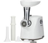 Мясорубка электрическая, 1500 Вт, с функцией реверса, насадками кеббе, для приготовления сосисок и тремя дисками в комплекте. Материал корпуса: пластик. Материал лотка: металл.
