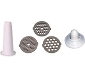 Максимальная мощность 1800 Вт Функция реверса ДА Защита двигателя от перегрузки ДА Защита от перегрева ДА Перфорированный диск для фарша 2 Насадка для приготовления домашних колбас ДА Насадка для кеббе ДА Насадка для шинковки ДА
