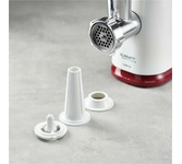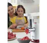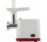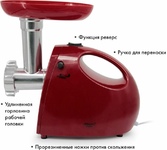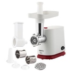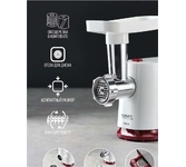 Тип: С овощерезками. Мощность, Вт: 1800. Производительность кг/мин: 2. Функция реверс: Да. Перфорированные диски для мяса, размер отверстий мм: 5 и 7. Защита двигателя от перегрузки: Да. Нож из нержавеющей стали: Да. Насадка кеббе: Да. Насадка для приготовления домашних сосисок: Да. Насадки для терки и шинковки овощей, шт.: 2. Материал лотка для подачи мяса: Пластик. Резиновые ножки для повышенной устойчивости: Да. Количество решеток: 2. Особенности модели: Отсек для хранения диска. Цвет: Белый с красным.