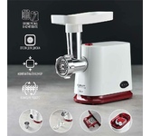 Мощность 1800 Вт. Производительность 2 кг/мин. Реверс. Нож из нержавеющей стали. Две решетки в комплекте 3, 5 мм. Насадка для приготовления колбас. Насадка для кеббе. Корпус с гигиеничным покрытием. Кабель питания 100см. 230 B ~ 50 Гц.