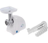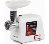 Мощность (Вт): 2000; Напряжение (В): 230; Насадка для набивки колбас: есть; Насадка-соковыжималка: есть; Реверс: Есть; Решетки: 2, средняя, крупная.; Частота (Гц): 50; Защита двигателя от перегрузки.Лезвие: нержавеющая сталь;