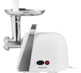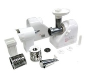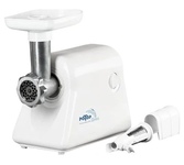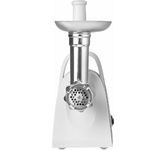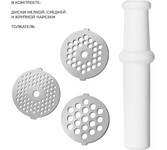 Мощность 1500Вт, производительность 1.6кг/мин; количество скоростей — 1; реверс; защита от перегрева; насадка для колбас; насадка для кеббе; насадка для соков; материал лотка — пластик; цвет — белый Функция реверс поможет избавиться от намотавшихся на шнек и пленок Три решетки с отверстиями различного размера позволяют получить фарш различной консистенции. Сочетание высокой производительности с низким потреблением электроэнергии Особая конструкция шнековой камеры с винтовыми канавками и шнек с переменным шагом создают оптимальные условия для переработки продуктов