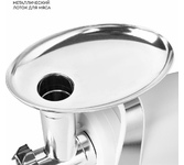 Электрическая мясорубка, Максимальная мощность 2200 Вт, Электродвигатель постоянного тока, DC, Высокая производительность до 2,2 кг. мяса в минуту, Стильный корпус из нержавеющей стали, Удобная ручка для переноски, Отсек для хранения аксессуаров 2 скорости работы для эффективной обработки разных продуктов, Функция реверса Нож из высококачественной стали, 2 решетки из высококачественной стали в комплекте: 5 мм, 7 мм, Легкое снятие шнекового блока, Толкатель для продуктов, Металлический лоток Противоскользящие резиновые ножки-присоски, Насадка для формирования колбасок и кеббе, Двойная защита двигателя, Длина шнура 1,2 м