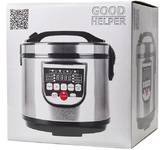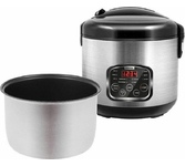 Объем 5 л Чаша с антипригарным покрытием Отложенный старт Поддержание температуры Автоматическое отключение системы при перегреве LCD дисплей В комплекте: мерный стаканчик, ложка, контейнер-пароварка 11 программ приготовления: Рис/Крупы/Каша/Суп/Варка/Приготовление на пару/Выпекание/Стерилизация/Варение/Тушение/Жарка Съемный шнур питания Корпус из нержавеющей стали Мощность 900 Вт