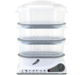Электрическая пароварка; Мощность: 800 Вт; Объём всех ёмкостей: 7,5 л; Таймер на 60 минут; Управление: механическое; Материал корпуса: пластик, нержавеющая сталь; Нагревательный элемент из нержавеющей стали; Сеть: 220-240В, 50/60Гц,