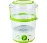 Современный дизайн Легкость в эксплуатации Две чаши; Объем 5л. Два дополнительных контейнера; Таймер на 60 минут с сигналом; Световой индикатор; Мощность 600Вт;