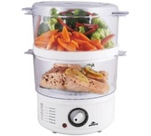Электрическая пароварка; Мощность: 1100 Вт; Объём всех ёмкостей: 11 л; Таймер на 60 минут; Защита от нехватки воды; Управление: механическое; Материал корпуса: пластик, нержавеющая сталь; Нагревательный элемент из нержавеющей стали; Сеть: 220-240В, 50/60Гц,