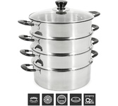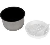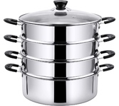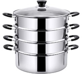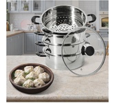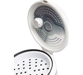 800Вт, многофункциональная электрическая пароварка (готовит на пару, тушит, жарит, варит, стерилизует), регулируемая мощность 400Вт /800Вт, 3 паровые корзины из нержавеющей стали, общий объем 8л, чаша с антипригарным покрытием 1,2л, двухслойный корпус: металл + пластик, диаметр внутренний 22,5см, внешний – 23см, высота 1 корзины: 6.5 см, глубина чаши: 9 см, крышка из закаленного стекла с паровыводящим отверстием, механическое управление, защита от перегрева, цвет корпуса: белый молочный. Длина шнура: 0,8 м. Размеры прибора: 37*29,5см