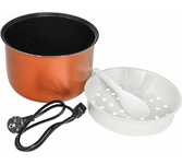 Мощность 800 Вт. Общий объем 9 л. Стальной корпус. 3 чаши для приготовления. Быстрое парообразование. Все пластиковые элементы не содержат BPA. Механический тип управления. Чаша рисоварка. Таймер 60 мин. Индикатор работы.