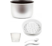 Объем 5 л Чаша с антипригарным покрытием Отложенный старт Поддержание температуры Автоматическое отключение системы при перегреве LED дисплей 9 программ приготовления Рис Суп Мясо Детское меню Рыба Каша Тушение Выпекание Разогрев Мощность 1000 Вт В комплекте: мерный стаканчик, ложка, книга рецептов