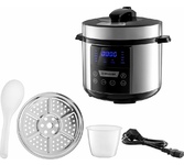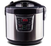 Мощность 1000 Вт Объем чаши 6 л Антипригарное покрытие чаши 12 программ приготовления: рис, суп, паста, мясо, рыба, овощи, йогурт, выпечка, тушение, пар, жарка, быстрое приготовление Сенсорное управление Многофункциональный LED-дисплей Корпус из высококачественное нержавеющей стали Таймер 24 часа, позволяющий приготовить блюда к назначенному сроку Поддержание температуры 24 часа Звуковой сигнал по окончанию работы Чашу и аксессуары можно мыть в посудомоечной машине Контейнер для приготовления на пару, мерный стакан, ложка