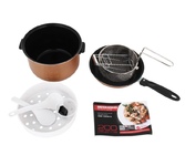 Мощность: 750 Вт Объем: 5 л Электронное управление Материал корпуса: пластик Покрытие чаши: керамическое Максимальное время установки таймера: 24 ч Поддержание тепла Отложенный старт Габариты (ВхШхГ): 26x30.6x39.8 см Вес: 3.72 кг Программы13, включая: выпечка каша крупа тушение приготовление на пару плов жарка йогурт