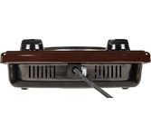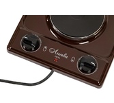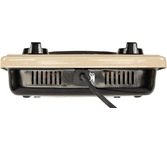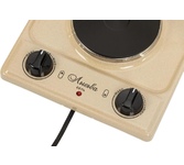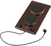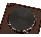 (ШхГхВ) 29х51х10 см.Цвет коричневый.Установленная мощность: 2.2 кВт Масса нетто: 6 кг Количество конфорок: 2 Мощность передней конфорки: 0.7 кВт (145 мм) Мощность задней конфорки: 1.5 кВт (180 мм) Бесступенчатая регулировка мощности.
