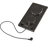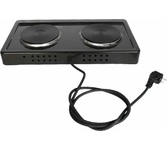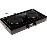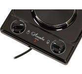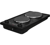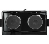 (ШхГхВ) 29х51х10 см.Цвет черный.Установленная мощность: 2.2 кВт Масса нетто: 6 кг.Количество конфорок: 2.Мощность передней конфорки: 0.7 кВт (145 мм) Мощность задней конфорки: 1.5 кВт (180 мм) Бесступенчатая регулировка мощности