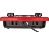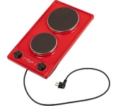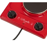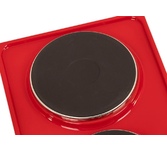 (ШхГхВ) 29х51х10см.Цвет вишневый.Установленная мощность: 2.2 кВт Масса нетто: 6 кг.Количество конфорок: 2 Мощность передней конфорки: 0.7 кВт (145 мм) Мощность задней конфорки: 1.5 кВт (180 мм) Бесступенчатая регулировка мощности.