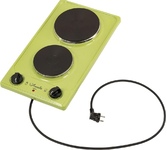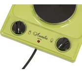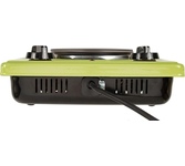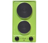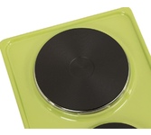 (ШхГхВ) 29х51х10 см.Цвет зеленое яблоко.Установленная мощность: 2.2 кВт Масса нетто: 6 кг.Количество конфорок: 2.Мощность передней конфорки: 0.7 кВт (145 мм).Мощность задней конфорки: 1.5 кВт (180 мм) Бесступенчатая регулировка мощности.
