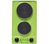 (ШхГхВ)29х51х10см.Цвет зеленое яблоко.Мощность единовременно потребляемая, кВт 2,2.Мощность конфорок, кВт (большой) 1,5.Мощность конфорок, кВт (малой) 0,7.Мощность установленная, кВт 2,2.Ступенчатые переключатели.