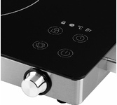 Тип конфорки электрической настольнойплиты индукционная Управление электронно-механическое Дисплей есть Варочная поверхность Материал рабочейповерхности закаленное стекло Количество индукционныхконфорок 1 Конфорка мощность 2000 Вт Особенности Количество режимов регулировкитемпературы 10 Количество программприготовления 6 Таймер есть Типтаймера электронный Индикаторработы есть Блокировка отдетей есть Длина шнурапитания 1.5 м Размеры и цвет Цвет черный Размеры(ШхВхГ) 28 x 6.7 x 35 см Вес 1.85 кг Габариты упаковки (ед) ДхШхВ 0.405x0.325x0.095 м Вес упаковки (ед) 2.35 кг