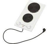 (ШхГхВ) 29х51х10см.Цвет белый.Установленная мощность: 2.2 кВт Масса нетто: 6 кг.Количество конфорок: 2 Мощность передней конфорки: 0.7 кВт (145 мм) Мощность задней конфорки: 1.5 кВт (180 мм) Бесступенчатая регулировка мощности.