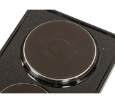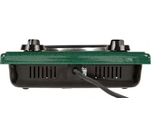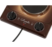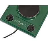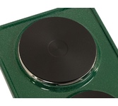 (ШхГхВ) 29х51х10 см.Цвет рябчик малахит.Установленная мощность: 2.2 кВт Масса нетто: 6 кг.Количество конфорок: 2 Мощность передней конфорки: 0.7 кВт (145 мм) Мощность задней конфорки: 1.5 кВт (180 мм) Бесступенчатая регулировка мощности.