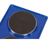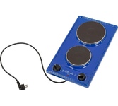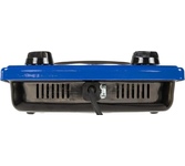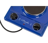 (ШхГхВ) 29х51х10 см.Цвет синий.Установленная мощность: 2.2 кВт Масса нетто: 6 кг.Количество конфорок: 2 Мощность передней конфорки: 0.7 кВт (145 мм) Мощность задней конфорки: 1.5 кВт (180 мм) Бесступенчатая регулировка мощности