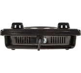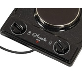 (ШхГхВ) 29х51х10см.Цвет рябчик.Установленная мощность: 2.2 кВт.Масса нетто: 6 кг.Количество конфорок: 2.Мощность передней конфорки: 0.7 кВт (145 мм) Мощность задней конфорки: 1.5 кВт (180 мм).Бесступенчатая регулировка мощности.