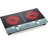 Мощность 2000 Вт + 1500 Вт. Управление сенсорное + регулятор. Ступеней мощности 20 с шагом 100 Вт. Таймер до 24 часов. Длина шнура 1,4 м. Размер устройства 580 х 340 х 75 мм.