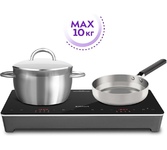 Общие данные: Габариты: 6,5х28х36 см Тип конфорок: 1 индукционная Мощность: 2000 Вт Управление и функции: Сенсорный дисплей и цифровая индикация 10 ступеней мощности 10 ступеней температуры, 60-200°C Функция Booster Поддержание температуры (60°C) Таймер до 180 минут (шаг 1 мин) Автоматическое распознавание посуды Безопасность: Замок от детей Автоматическое отключение Защита от перегрева Дополнительная информация: Очень простая и легкая очистка Посуда ∅ 150 мм - 220 мм Вес 2,5 кг