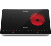 Источник питания: 220-240 В, ~50/60Гц; Максимальная потребляемая мощность при работе обеих конфорок: 3000 Вт; Температурных режимов – 10; Регулировка по времени: от 1 до 99 мин; Рабочая поверхность: стеклокерамика; Применяемая посуда: предназначенная для индукционных плит; размеры без упаковки 555x320x65 мм; Вес (кг): 4,5