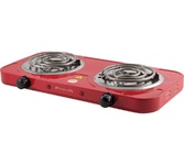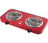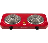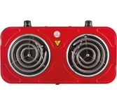 Мощность: 1000 Вт + 1000 Вт. Нагревательный тен. Размер конфорок: 140 мм. 2 световых индикатора работы. Защита от перегрева. Состав: металл, пластик, кабель. Цвет красный.