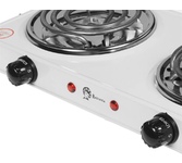 Номинальная мощность 2000 Вт Спиральные конфорки 14 + 14 см Стальной корпус с эмалевым покрытием Регулятор температуры Индикатор работы Защита от перегрева Кабель питания 60 см 230 B ~ 50 Гц
