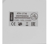 Номинальная мощность 1500 Вт Чугунный ТЭН диаметром 18.5 см Регулятор температуры Индикатор работы Защита от перегрева Кабель питания 60 см 230 B ~ 50 Гц