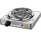 Мощность 1000Вт, 1 конфорка 145 мм, прочный корпус из нержавеющей стали, с которого легко удаляются загрязнения, спиральный нагревательный элемент, регулируемый термостат, индикатор работы. Длина сетевого шнура – 1м. Срок службы прибора – 5 лет. Цвет – нерж.сталь/черн.