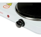 Количество конфорок 2шт, Материал конфорок - Чугун, Тип нагревательного элемента - Дисковый нагреватель, Размер конфорки 155мм, Индикация включения, Плавная регулировка температуры, Защита от перегрева, Количество режимов нагрева 5, Прорезиненные ножки, Потребляемая мощность 1000 Вт+1000Вт, Напряжение 220-240В 50-60Гц, Внешние размеры 23,5х7х43 см, Вес нетто Прибл. 2,55кг.