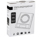 Нагревательный элемент индукционного типа Керамическая нагревательная поверхность 250*250мм LED дисплей 4 программы приготовления Режим автоматического выключения плитки при перегреве или при снятии посуды с поверхности Мощность 2000 Вт Длина шнура 120,5 см